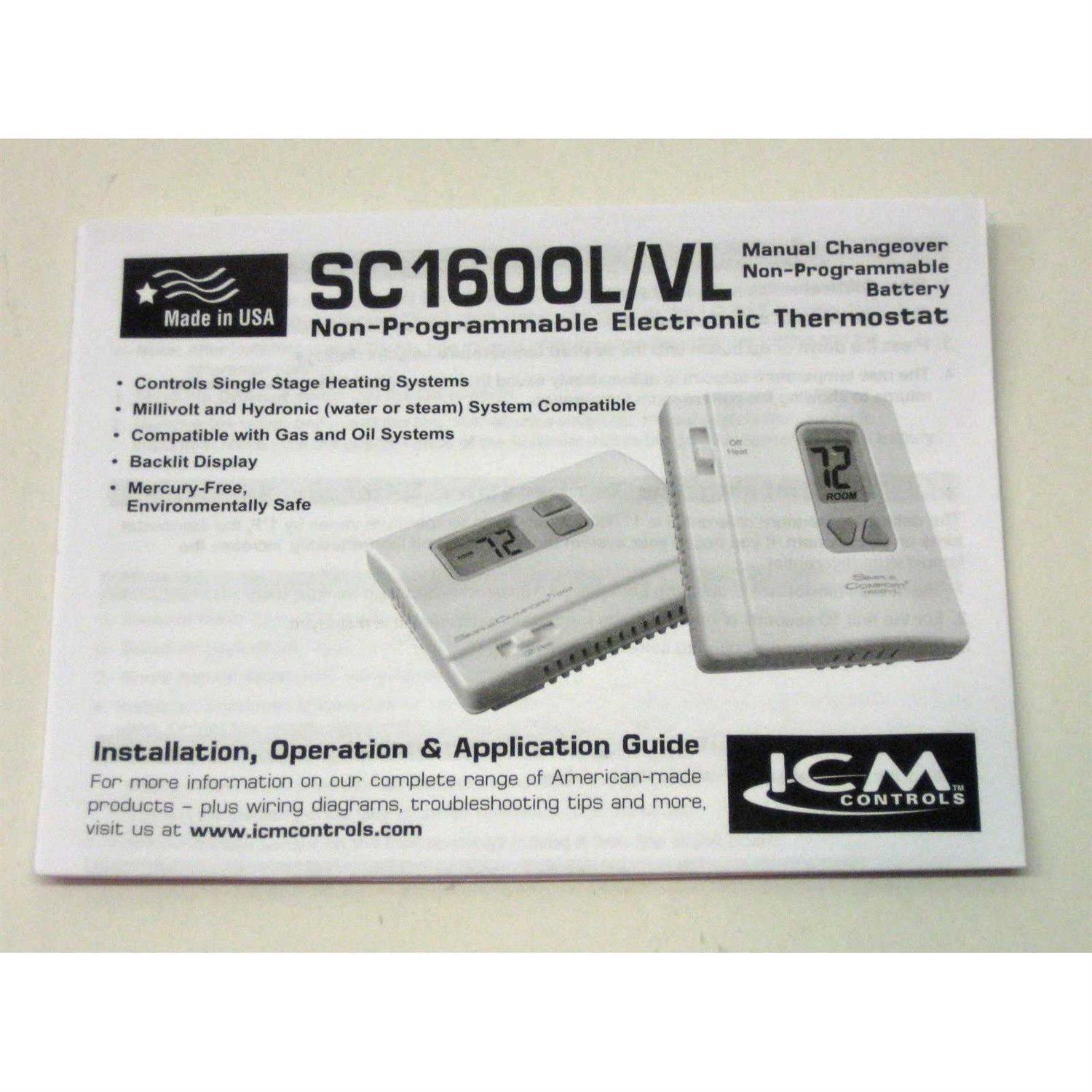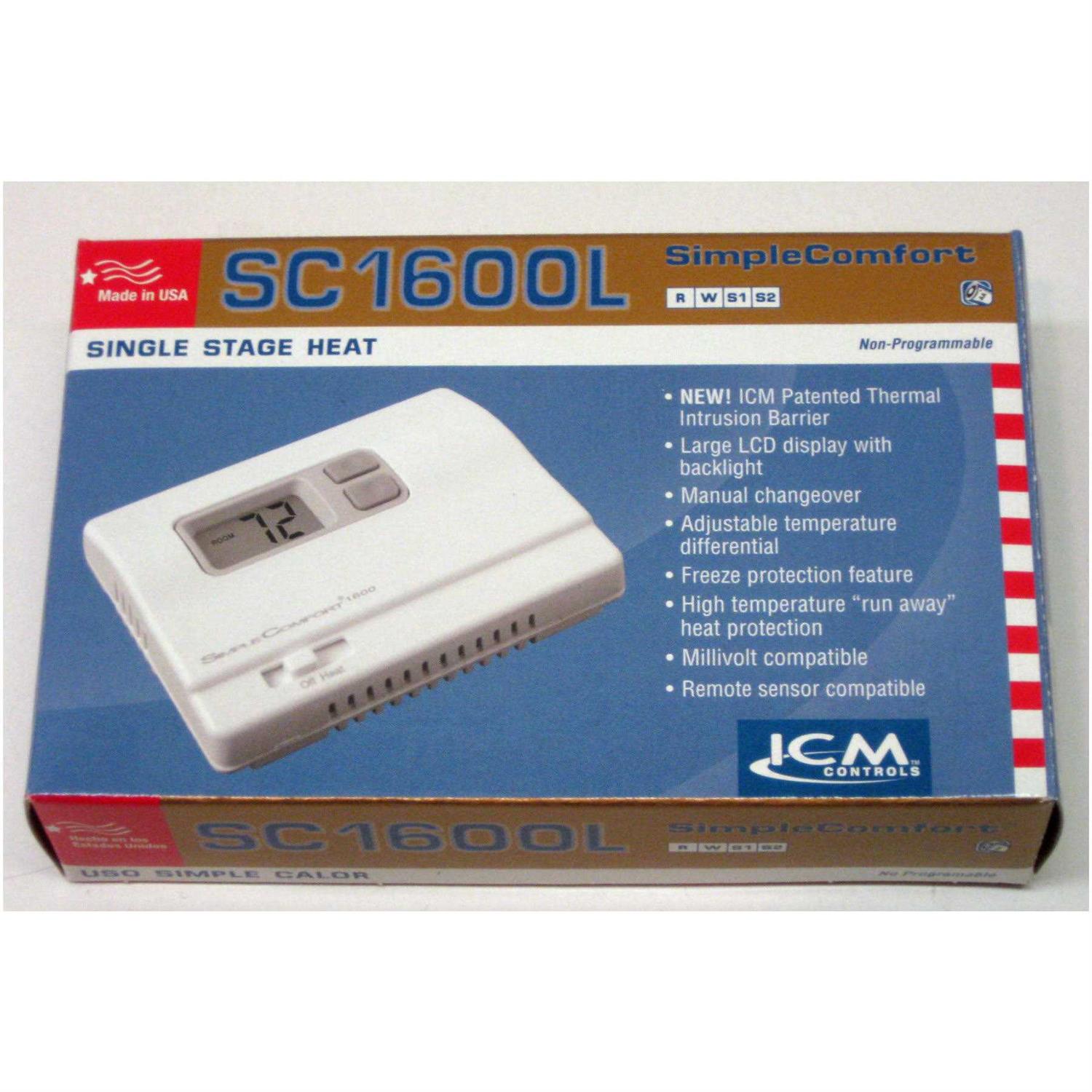 ICM Controls SC1600L Non-Programmable SimpleComfort Heat Only Thermostat
