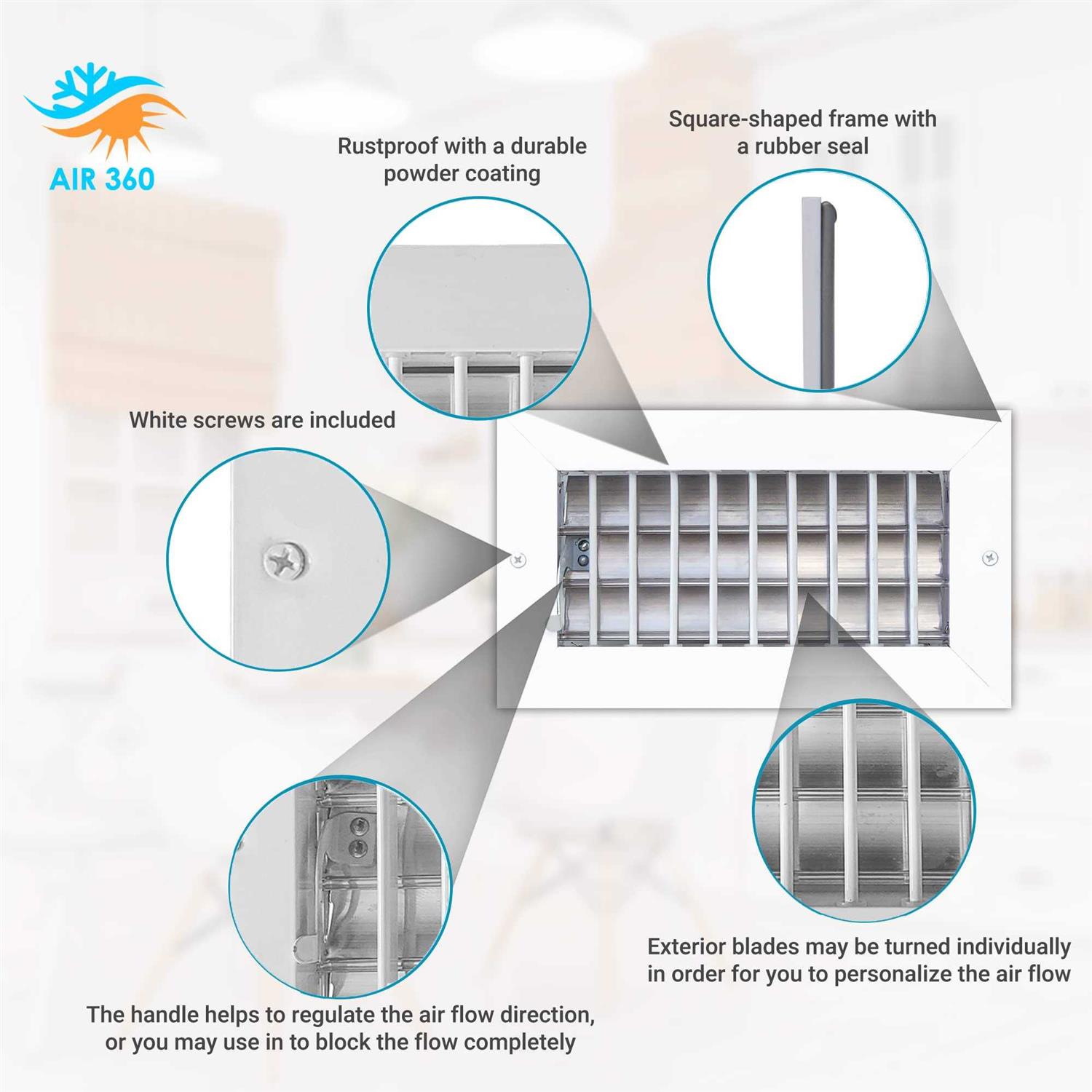 Air 360 Air Vent Covers Wall AC Grille – Premium Register Vent Cover – Durable Rustproof Aluminum