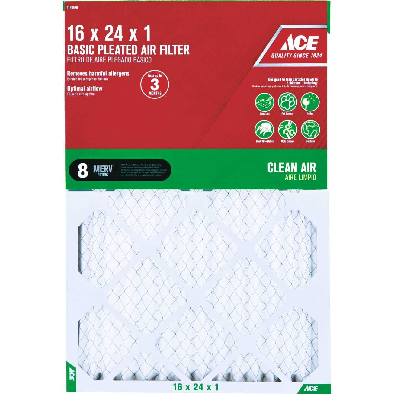 Ace 16 x 24 x 1 Pleated Furnace Air Filter