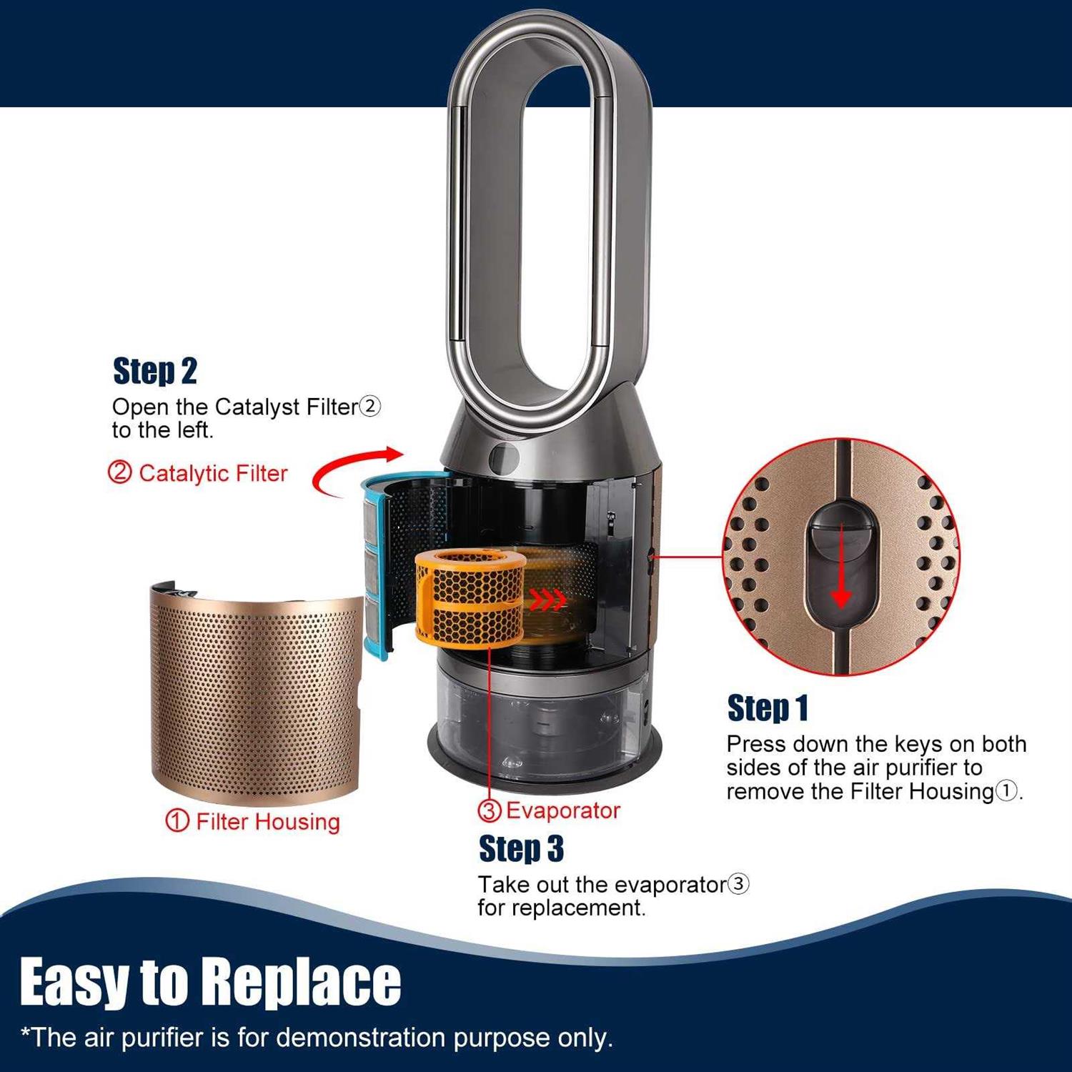 WYWY.Wide Air Purifier Carbon Fiber Evaporator Filter Replacement for Dyson PH01 PH02 PH03 PH04 PH3A Air Purifier Replacement Parts