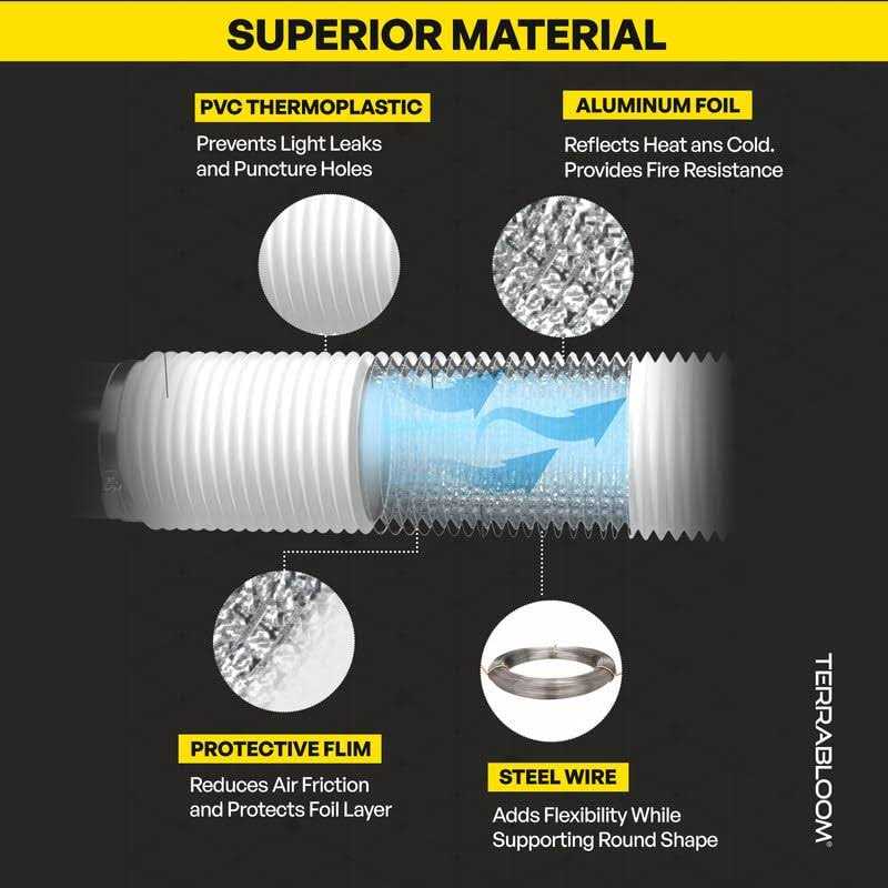 Terrabloom Flexible 8 Ducting Black Duct With 2 Clamps 4 Layer Hvac Ventilation Air Hose