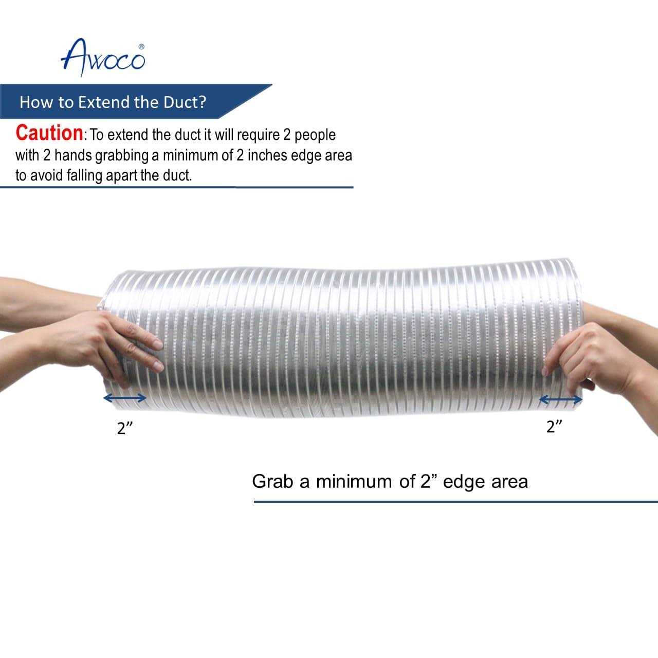 Awoco 8 Inches Diameter x 6 Feet Long Semi-Rigid Flexible Aluminum Duct